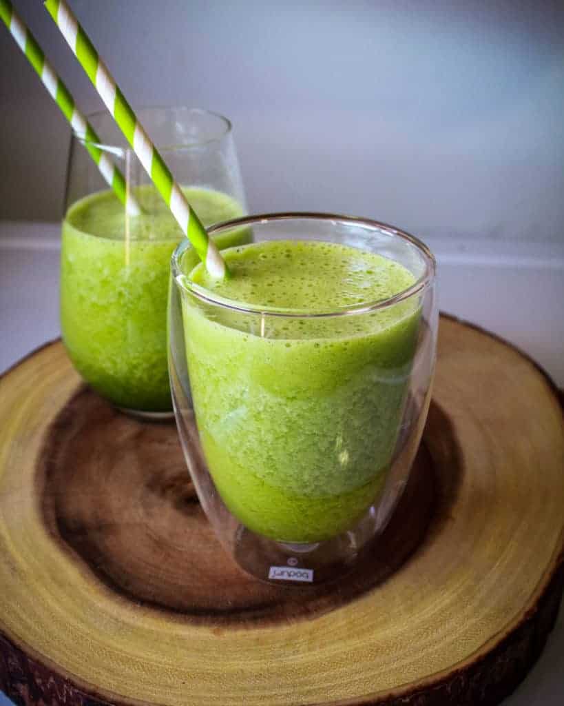 This is one of the best smoothies to have in the morning. There is no caffeine in this recipe. Instead, the citrus will give a nice mood boost. The natural sugars in fruits will pump you up naturally and gradually. And all the greenery will give you the vitamins to make you stronger for the day. It is definitely a “feel good” smoothie.